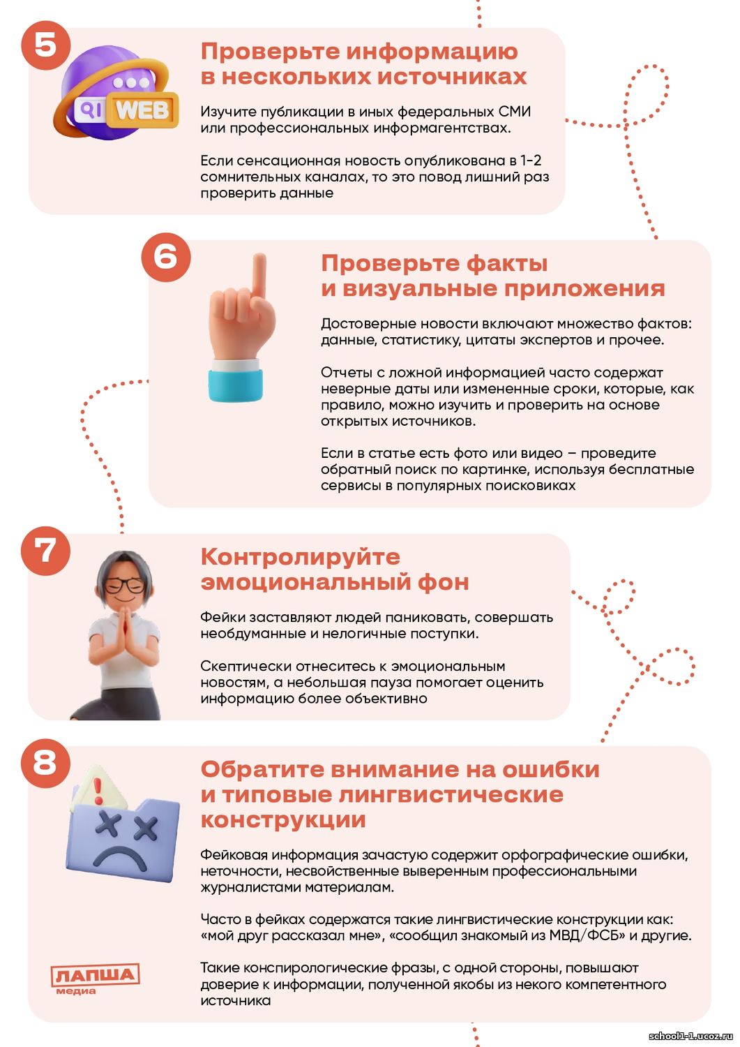 3. Не верьте всему, что в видите или читаете в интернете. При наличии сомнений в правдивости какой-то информации следует обратиться за советом к взрослым.