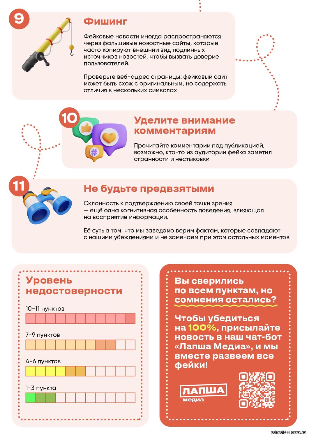 АНО «Диалог Регионы» в рамках проекта «Лапша Медиа» создана серия вертикальных видеороликов с базовыми принципами проверки информации на достоверность, которые объясняются доступным языком с избеганием большого количестве профессиональной терминологии. Данная информационная кампания